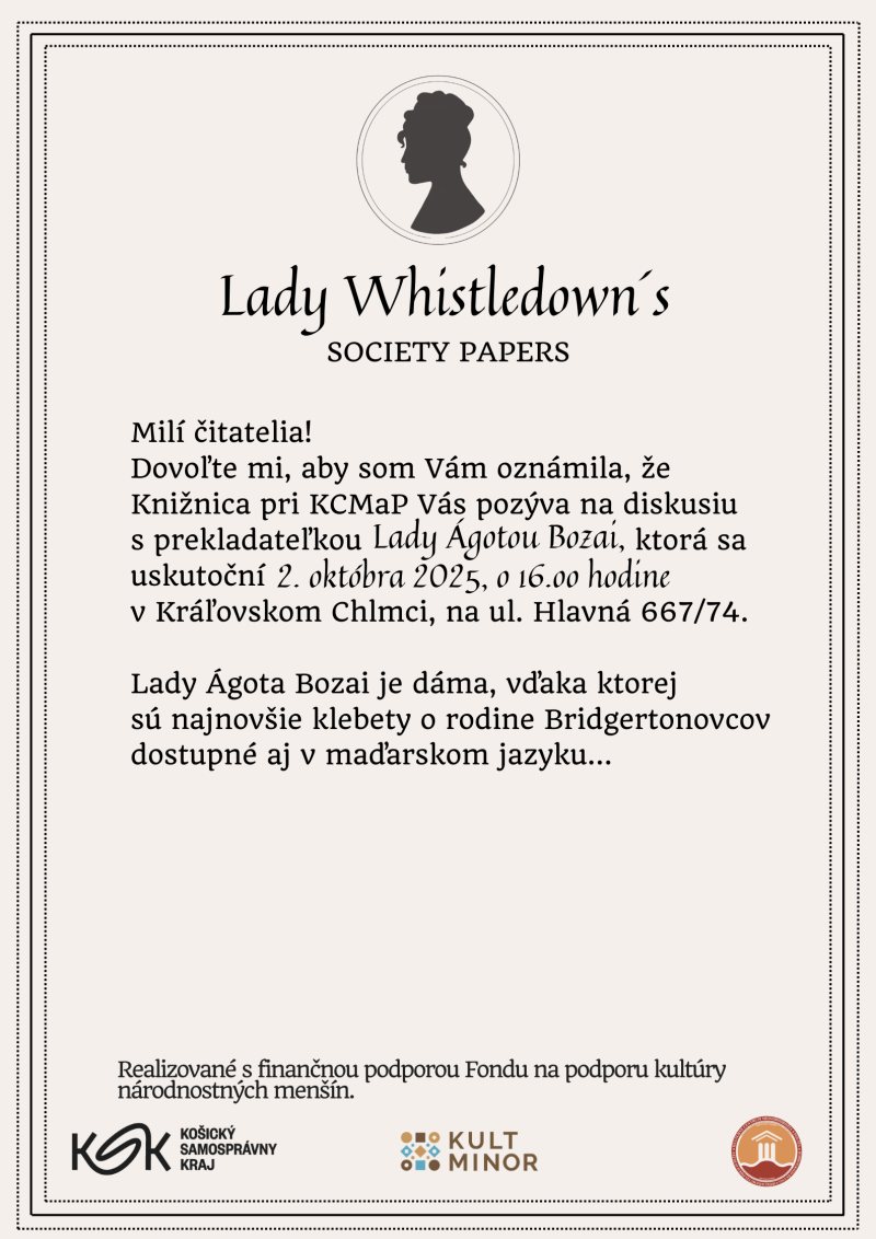 Diskusia s prekladateľkou Ágotou Bozai – Bridgerton