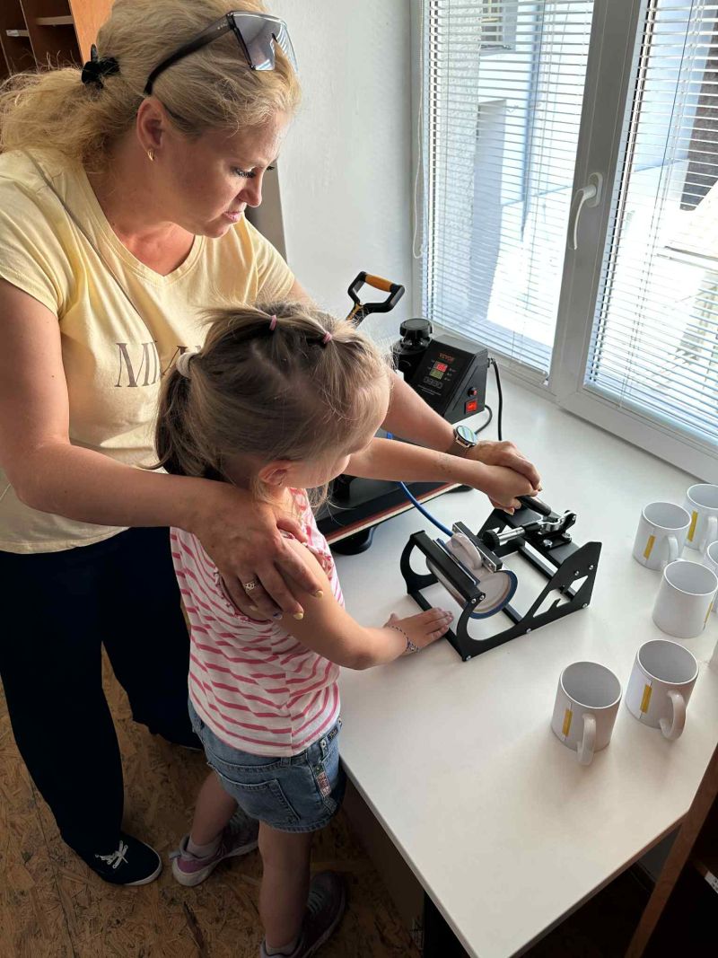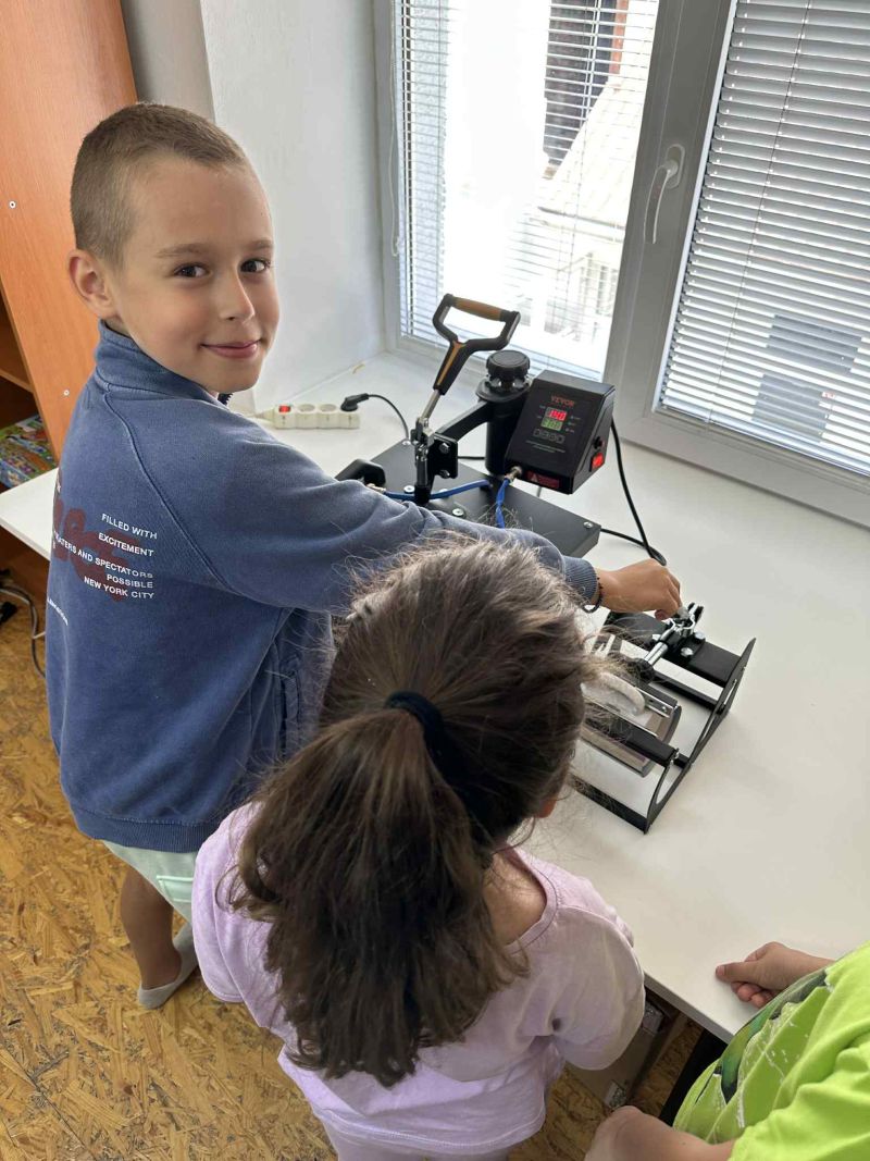 Deti si mohli vyskúšať, ako funguje potlač hrnčeka.